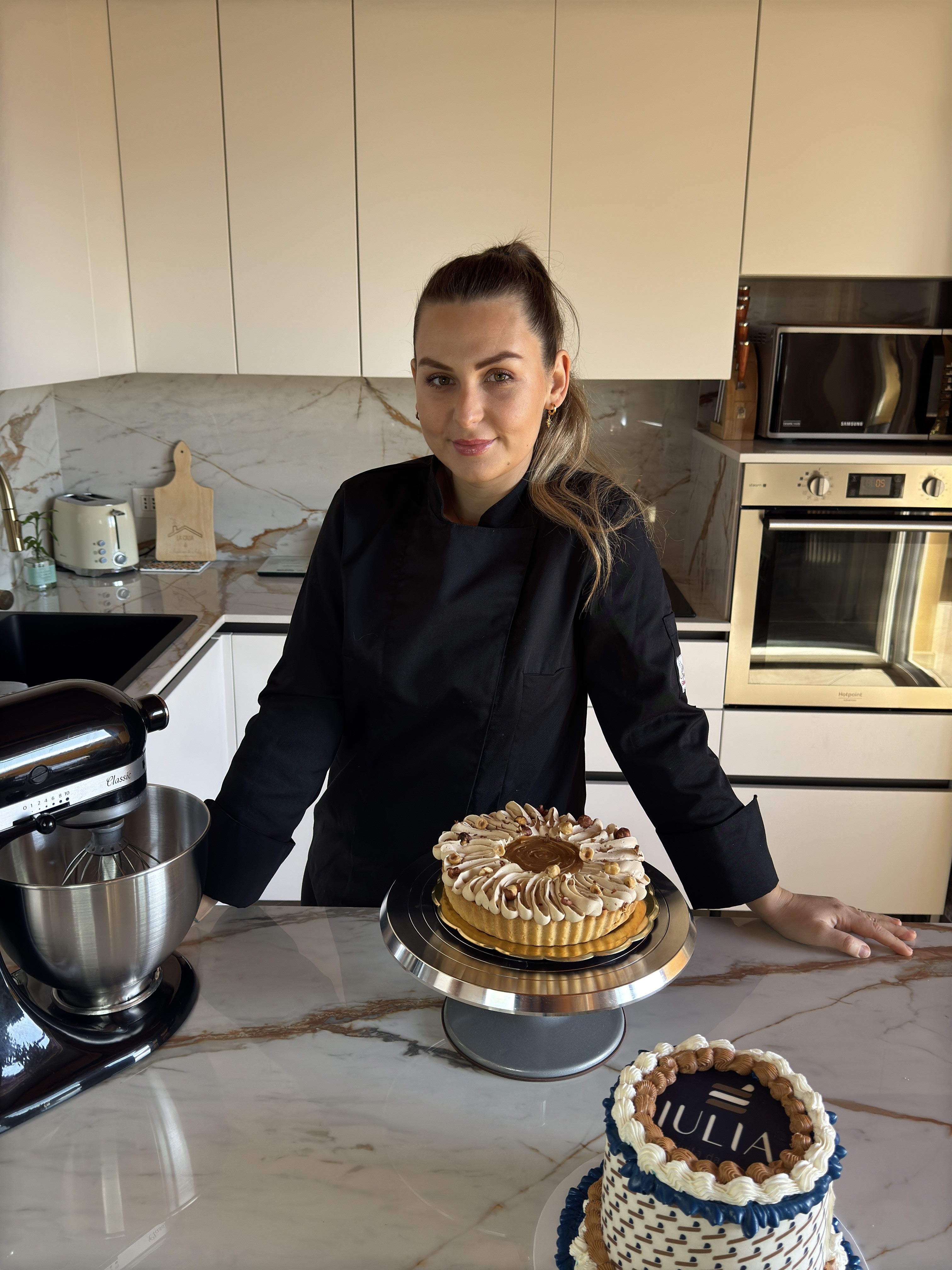 Sono Iulia, e la mia passione per la pasticceria nasce da bambina, quando preparare dolci per famiglia e amici era il mio modo di esprimere amore.
